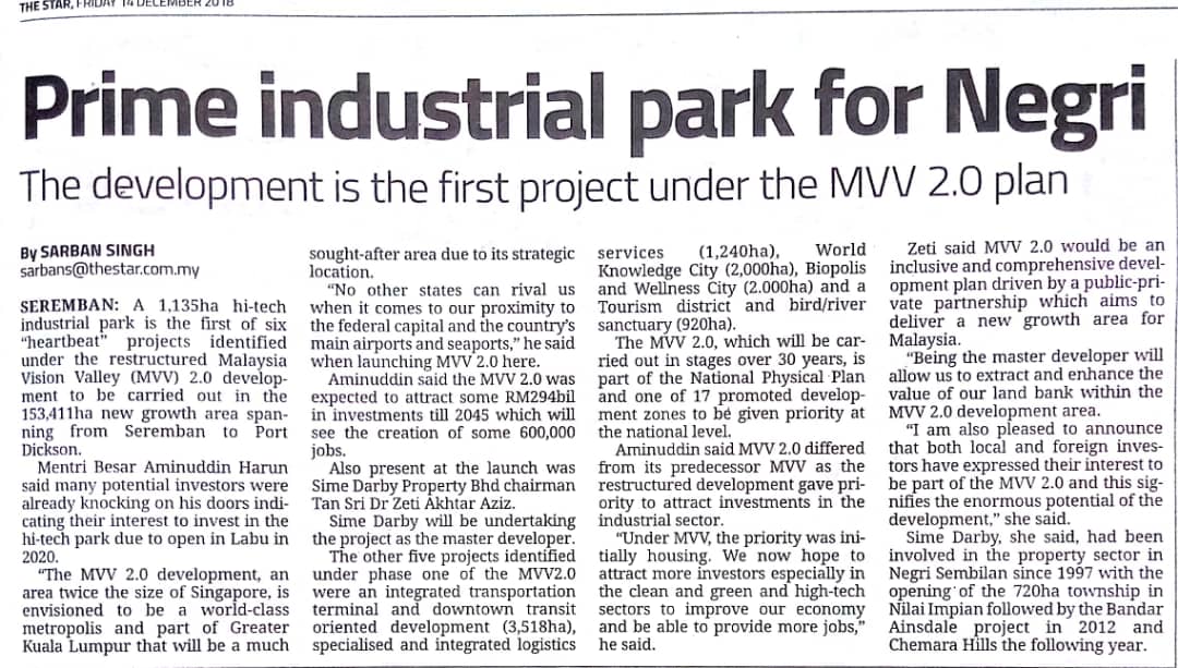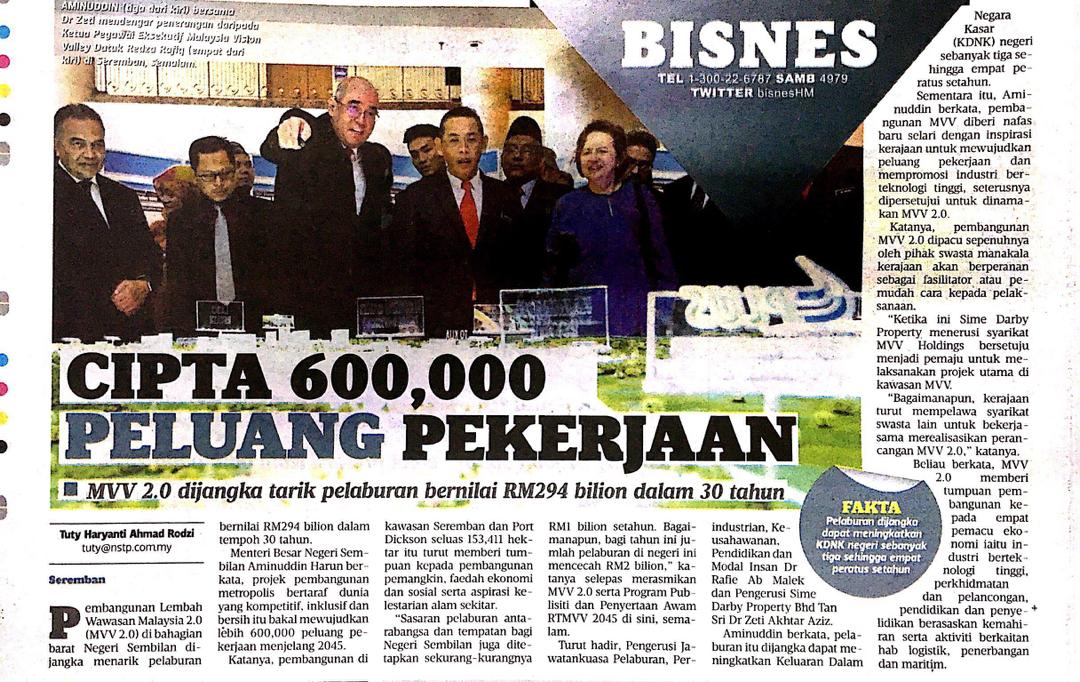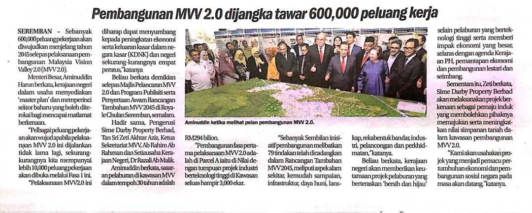 Tajuk :MBNS mensasarkan selepas pelaksanaan pembangunan Malaysia Vision Valley 2.0 (MVV 2.0) perlaburan di kawasan MVV dalam tempoh 30 tahun akan datang adalah sehingga RM294 bilion menjelang tahun 2045