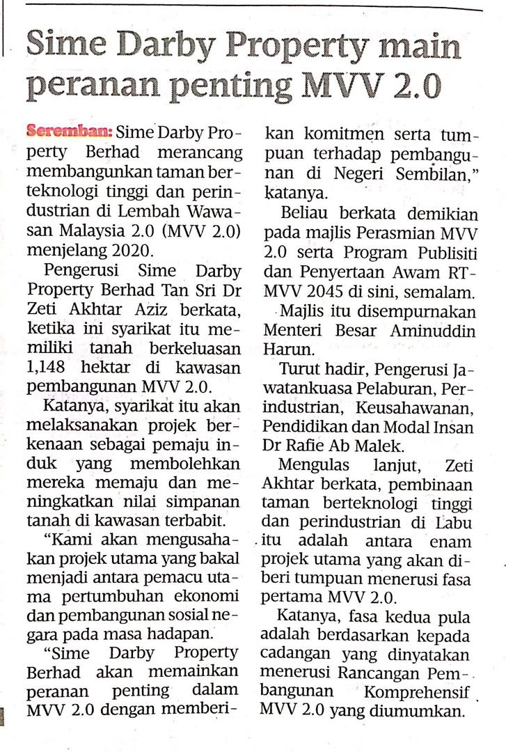 Tajuk :Sime Darby Property main peranan penting MVV 2.0