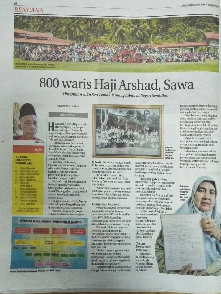 16 Disember 2018 Tajuk :800 waris Haji Arshad,Sawa Tarikh Berita:16 Disember 2018Akhbar :Sinar Harian