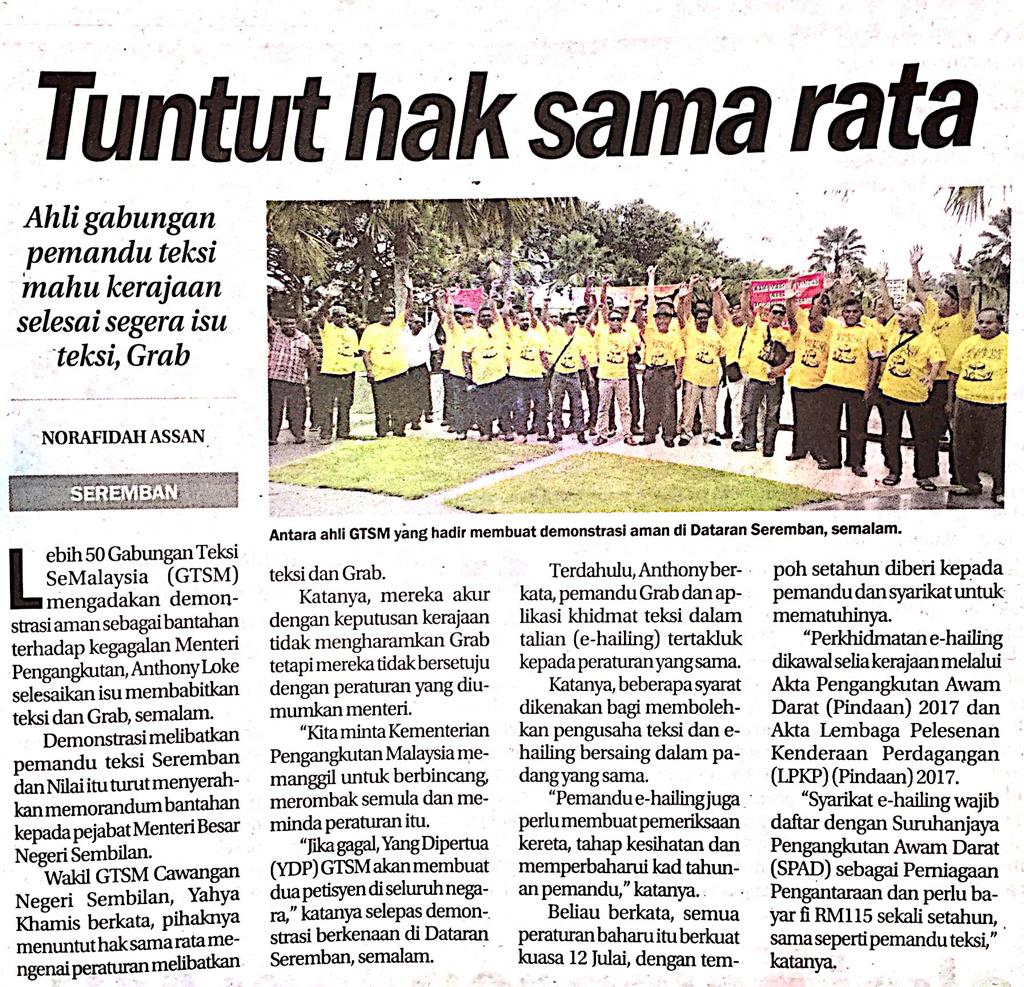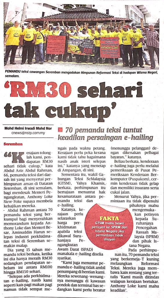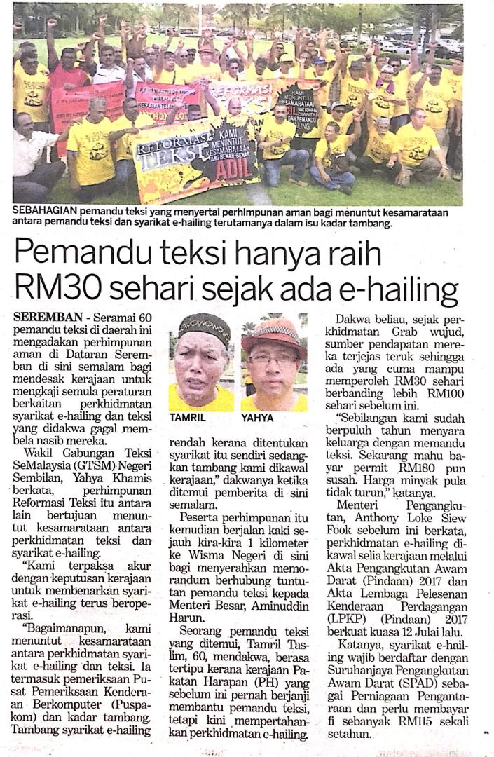Tajuk :Pemandu teksihanya raih RM 30 sehari sejak ada e-hailing