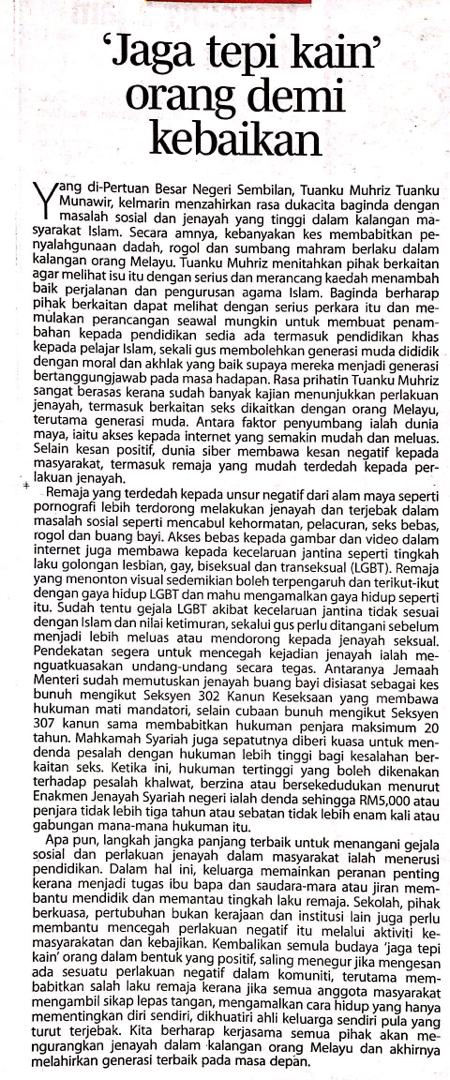 Tajuk :"Jaga tepi kain" orang demi kebaikan