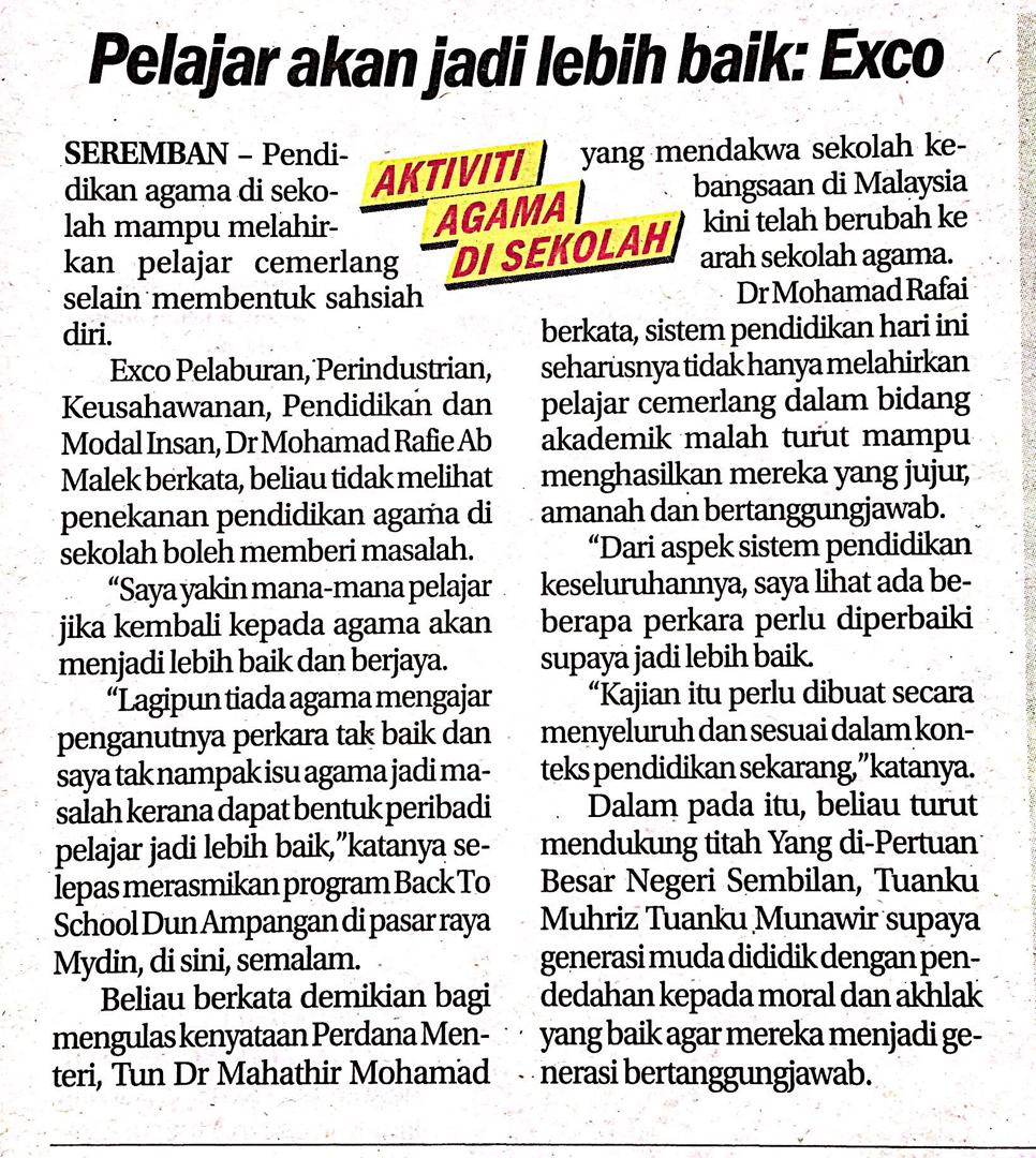 Tajuk :Pelajar akan jadi lebih baik : Exco