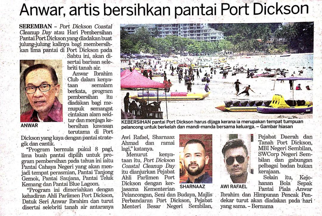 Tajuk :Anwar,artis bersihkan pantai Port Dickson