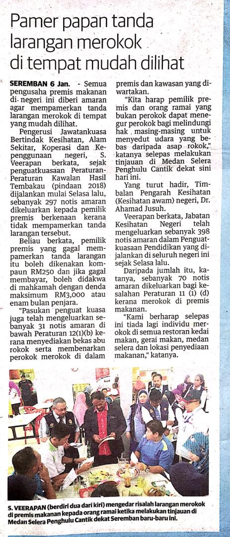 Tajuk :Pamer papan tanda larangan merokok di tempat mudah dilihat
