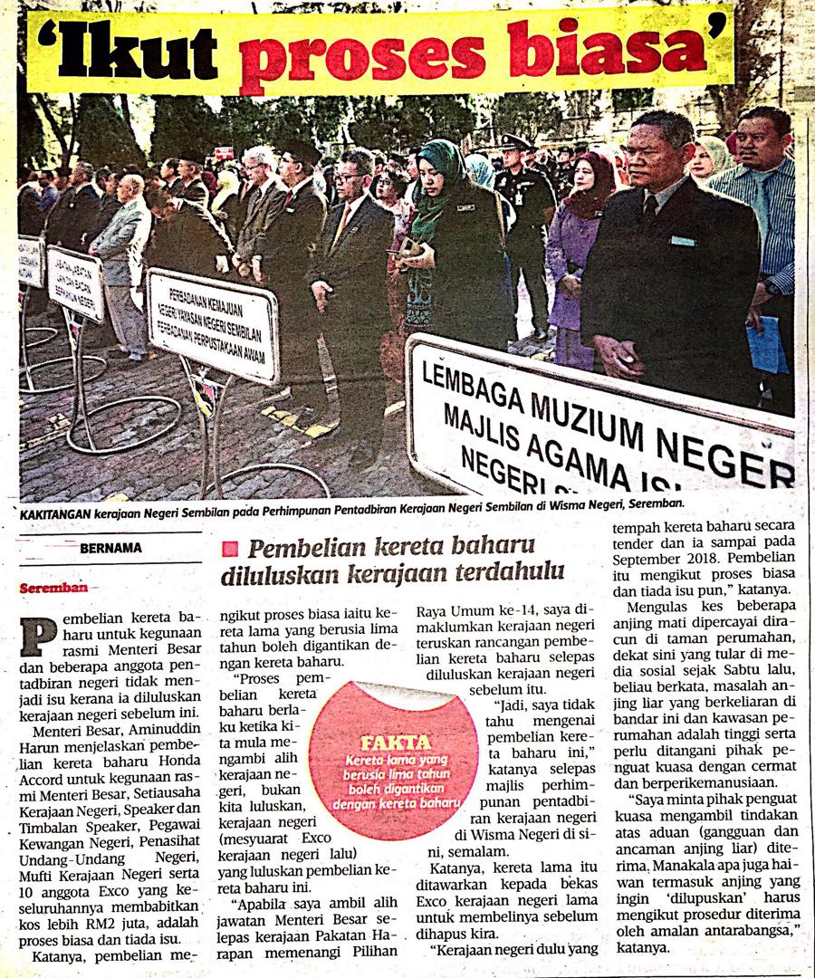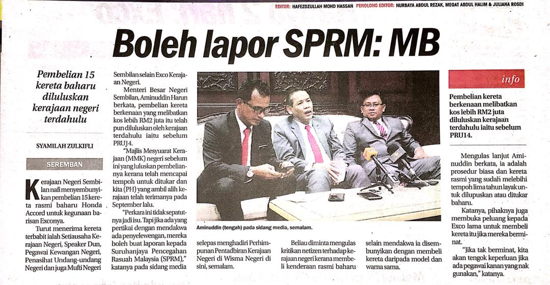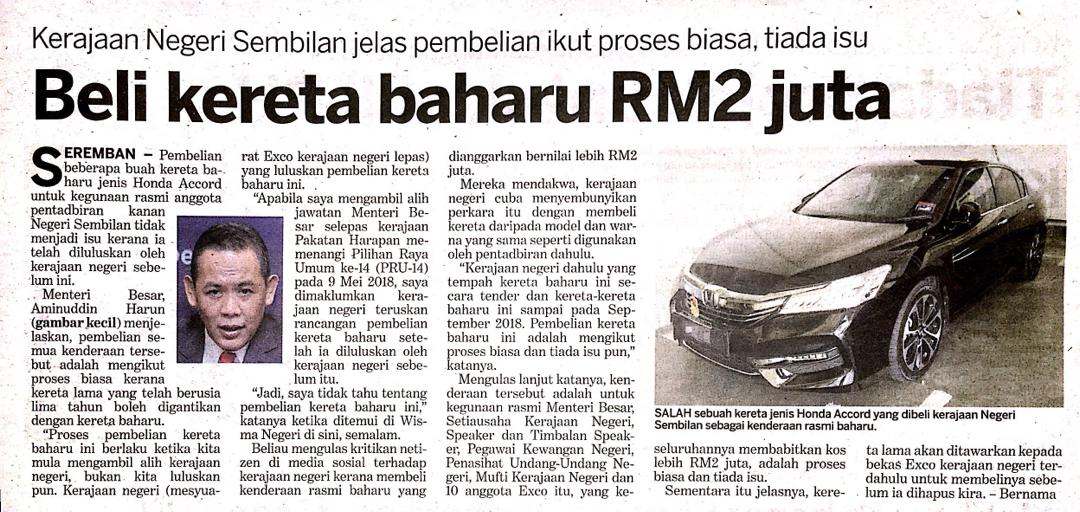 Tajuk :Negeri Sembilan nafi sembunyi beli kereta baharu EXCO