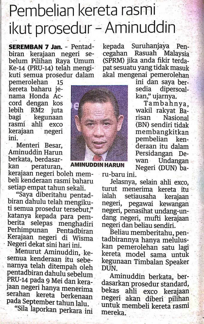 Tajuk :Pembelian Kereta rasmi ikut prosedur -Aminuddin