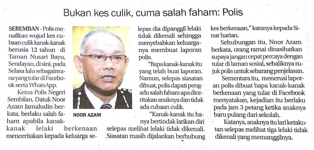 Tajuk :Bukan kes culik,cuma salah faham:Polis