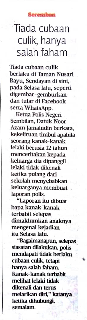 Tajuk :Tiada cubaan culik, hanya salah faham
