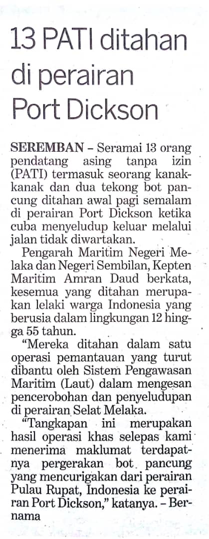 Tajuk :13 PATI ditahan di perairan Port Dickson