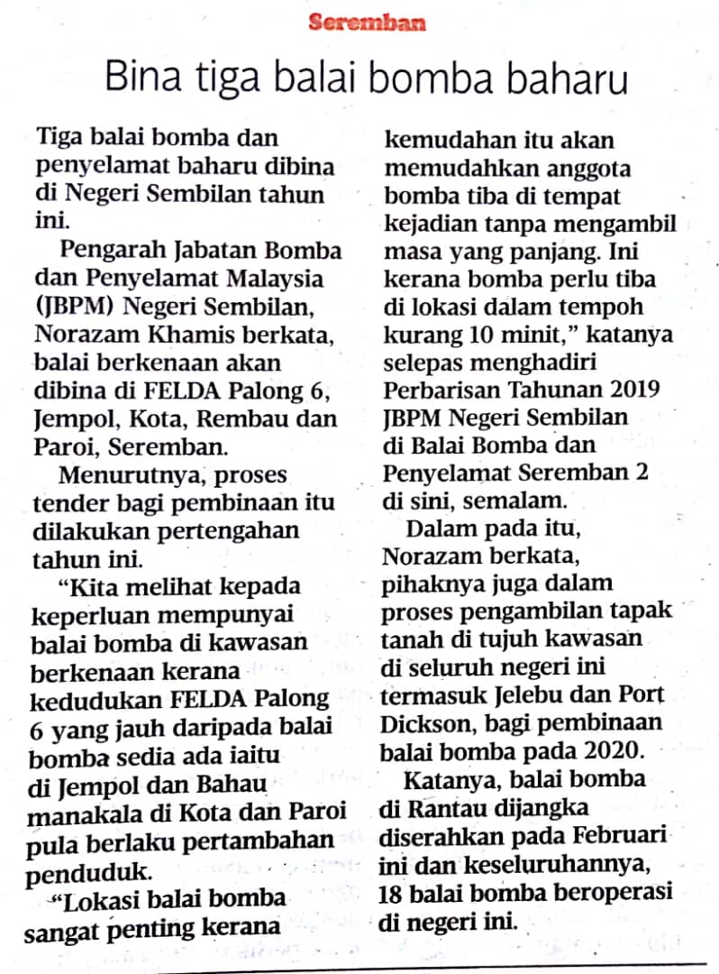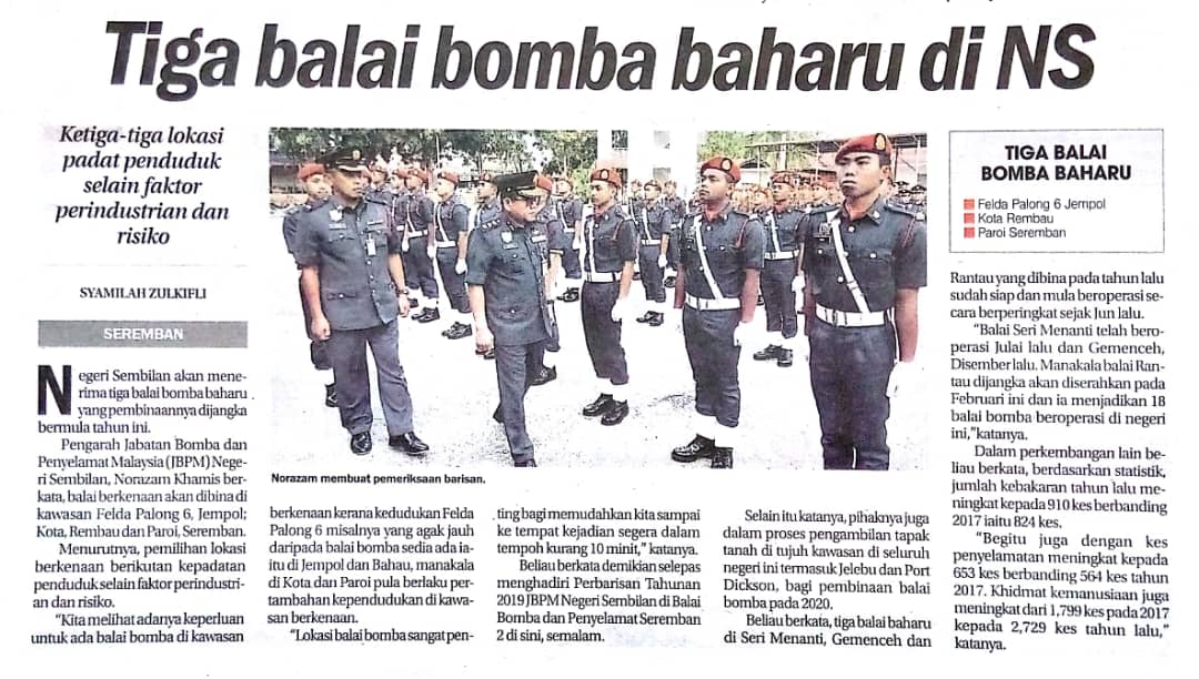 Tajuk :Tiga balai bomba baharu di NS