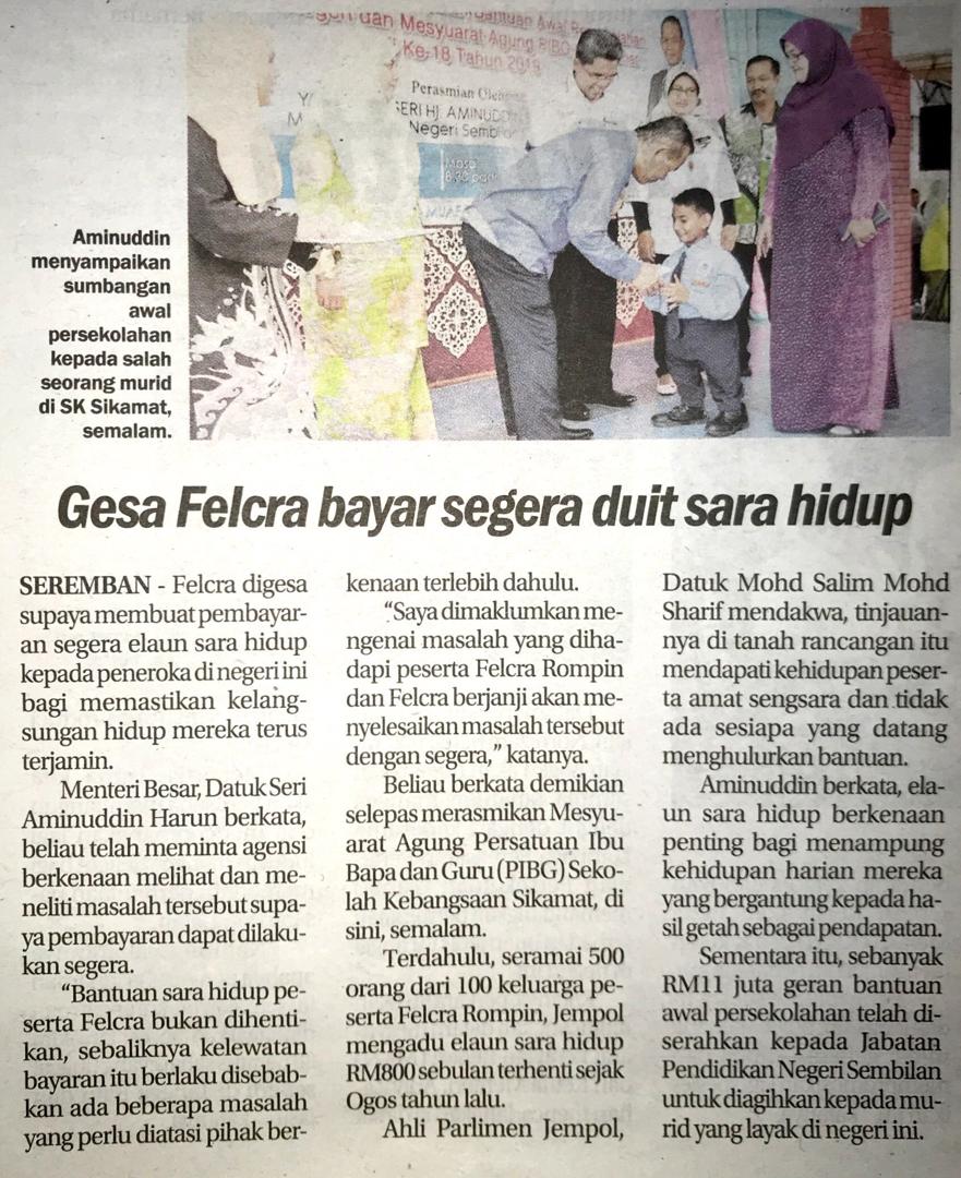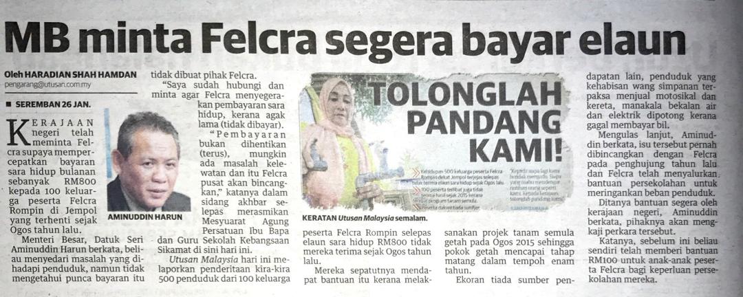 Tajuk :Gesa Felcra bayar segera duit sara hidup