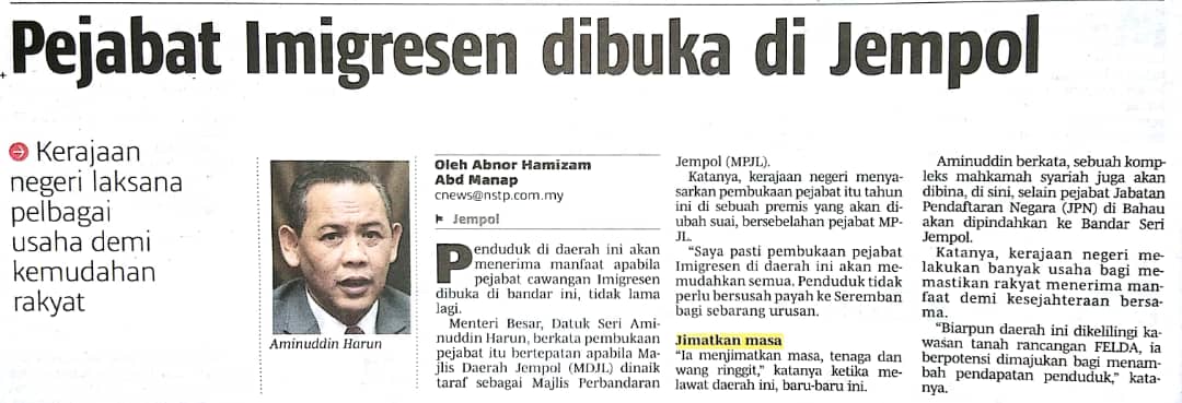 Tajuk :Pejabat Imigresen dibuka di Jempol
