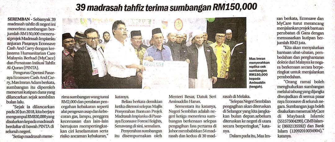 Tajuk :39 madrasah tahfiz terima sumbangan Rm150,000