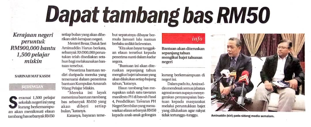 Tajuk :Dapat tambang bas Rm50