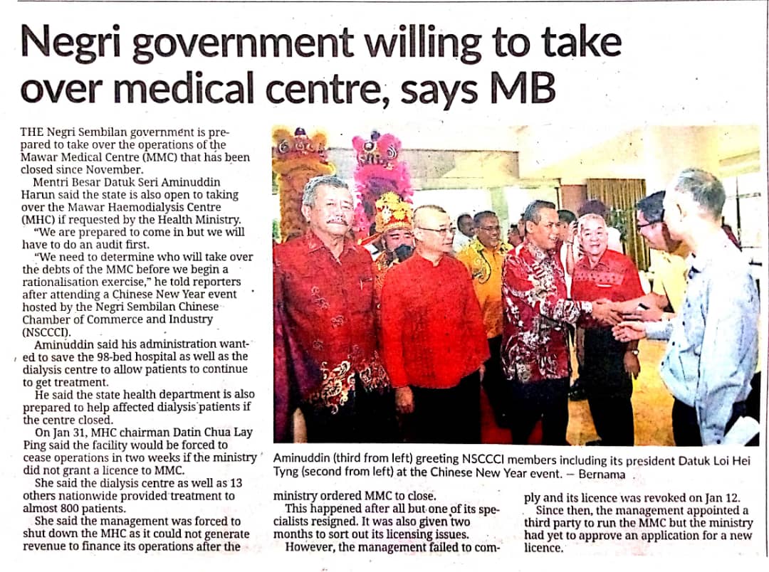 Tajuk :Negri government willing to take over medical centre, says MB