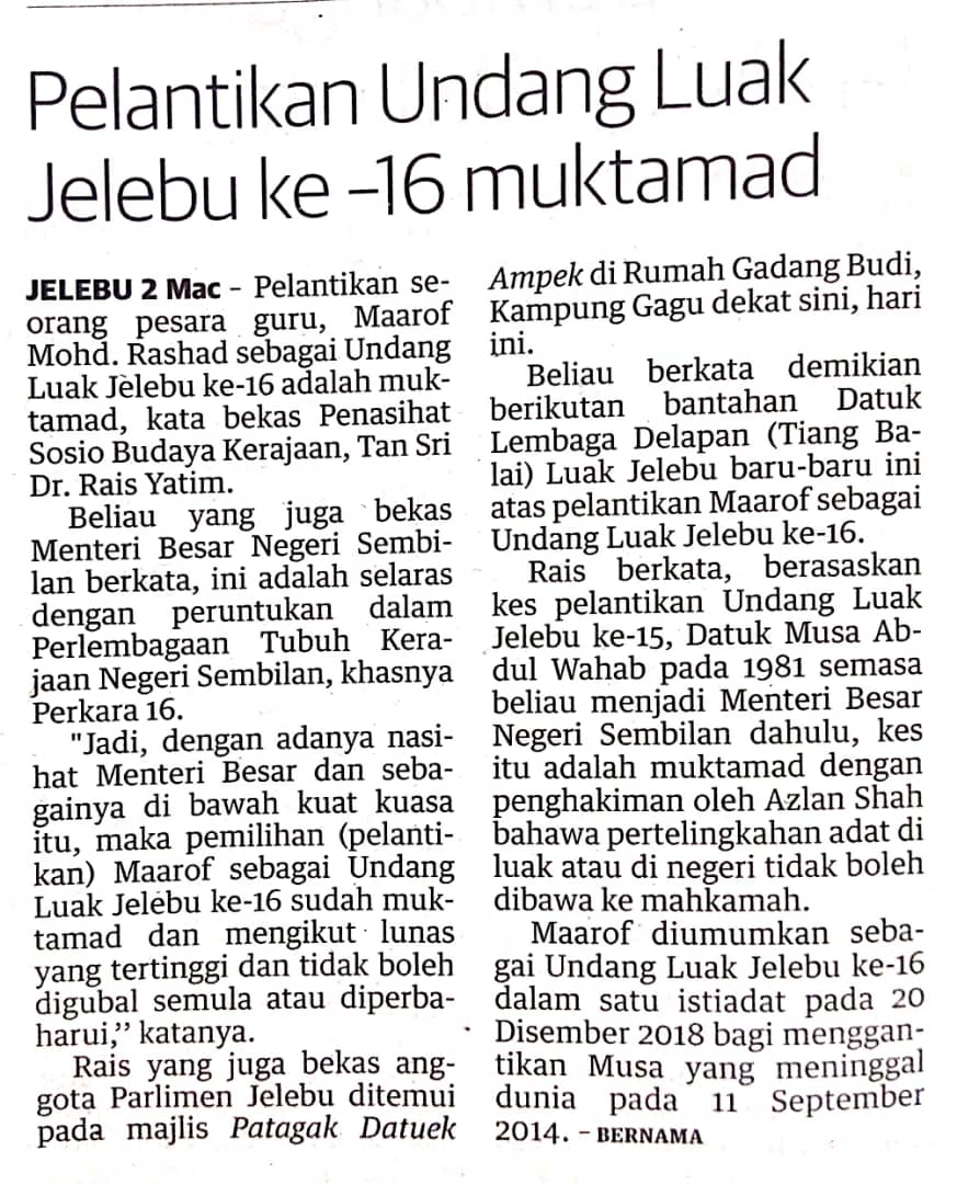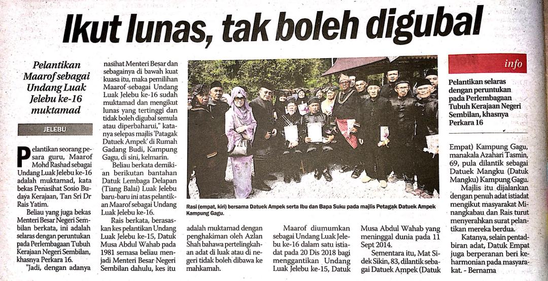 Tajuk :Pelantikan Undang luak jelebu ke-16 muktamad