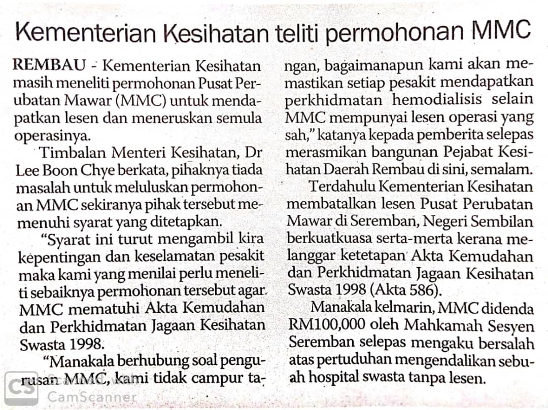 Tajuk :Kementerian Kesihatan teliti permohonan MMC