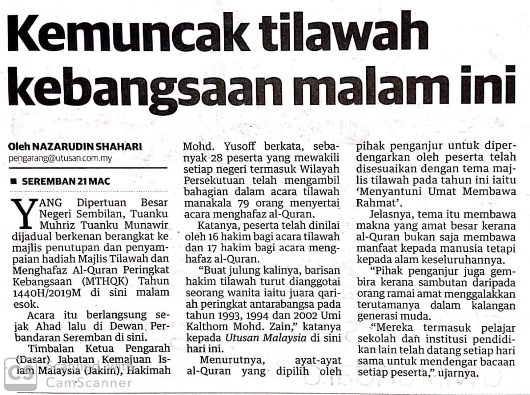 Tajuk :Kemuncak tilawah kebangsaan malam ini