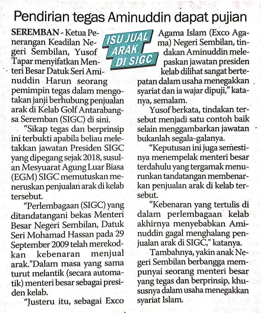 Tajuk :Pendirian tegas Aminuddin dapat pujian