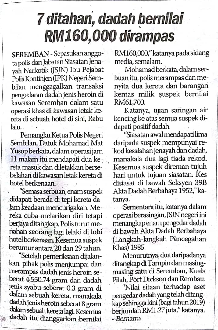 Tajuk :7 ditahan,dadah bernilai RM 160,000 dirampas