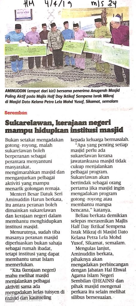 Tajuk :Sukarelawan,kerajaan negeri mampu hidupkan institusi masjid