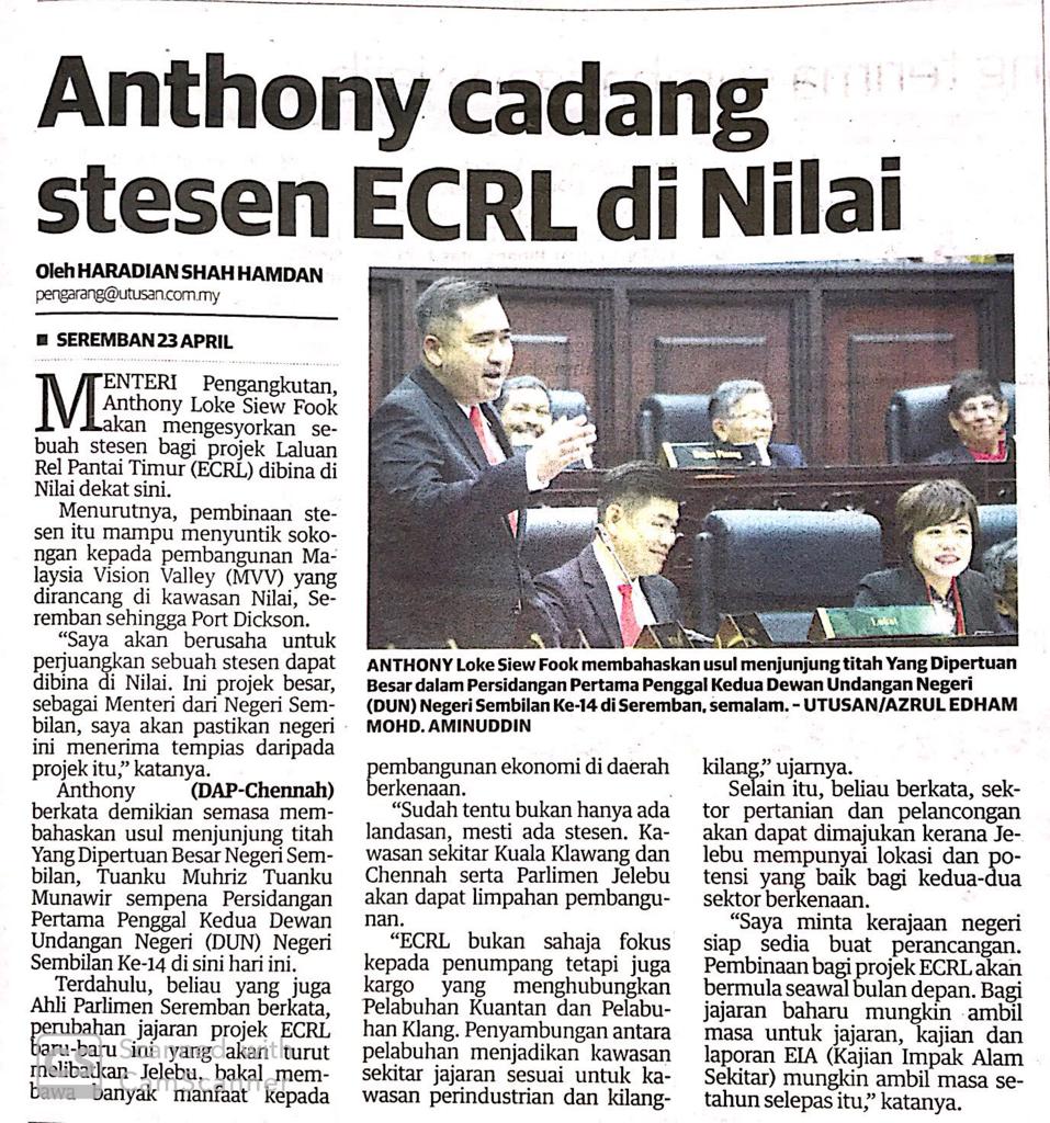 Tajuk :Anthony cadang stesen ECRL di Nilai