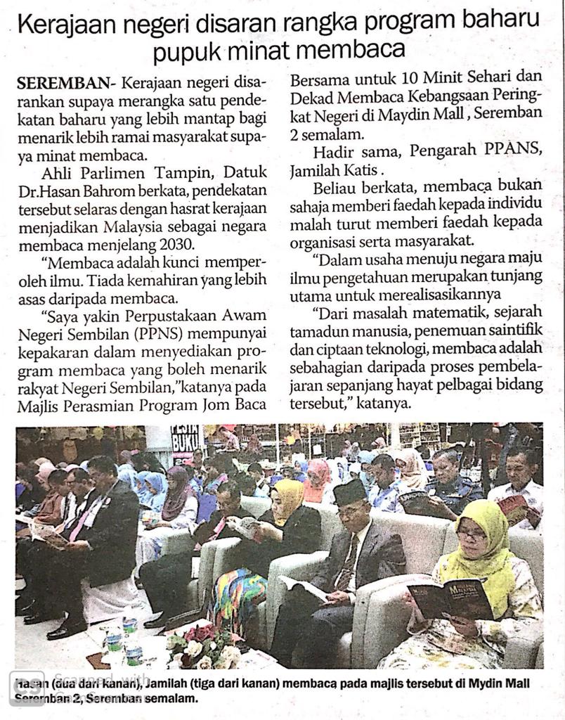 Tajuk :Kerajaan negeri disarankan rangka program baharu pupuk minat membaca