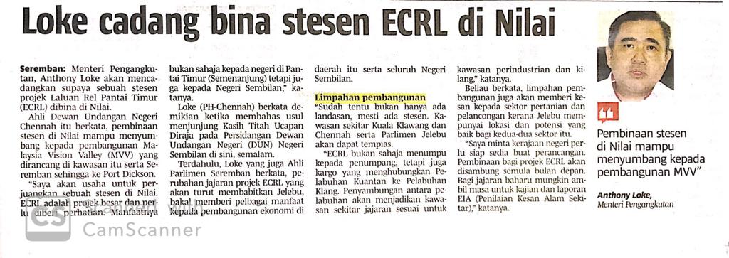 Tajuk :Loke cadang bina stesen ECRL di Nilai