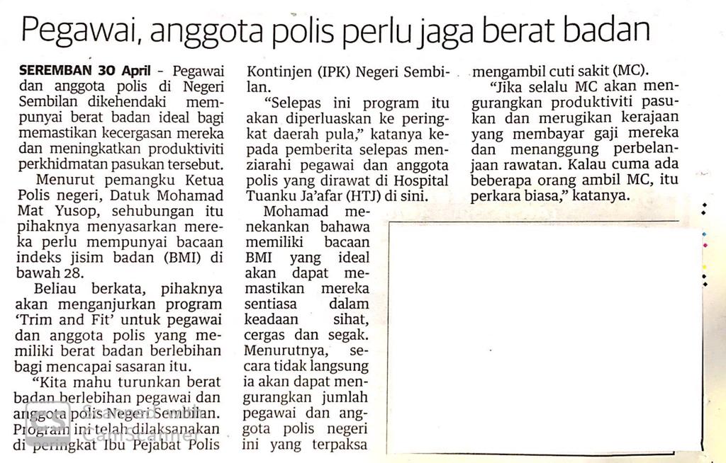 Tajuk :Pegawai,anggota polis perlu jaga berat badan