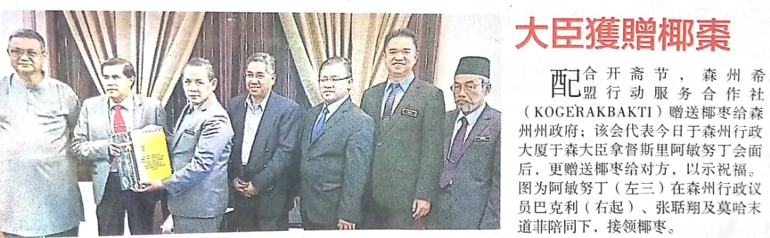 Tajuk :Seremban- MBNS menerima sumbangan kurma daripada Koperasi Gerak Bakti Harapan Negeri Sembilan untuk diagihkan kepada masyarakat di sekitar Negeri Sembilan.