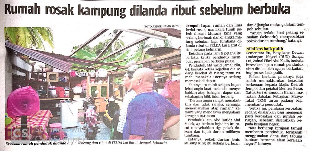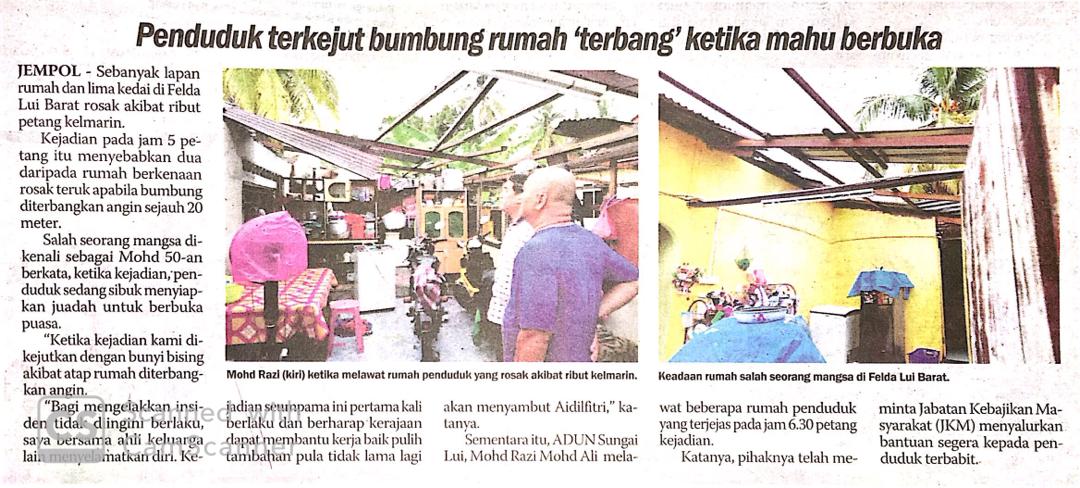 Tajuk :Penduduk terkejut bumbung 'Terbang"ketika mahu berbuka