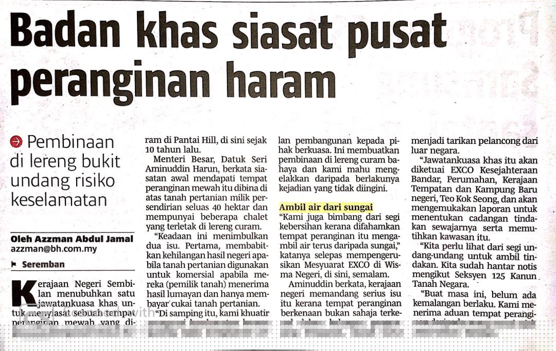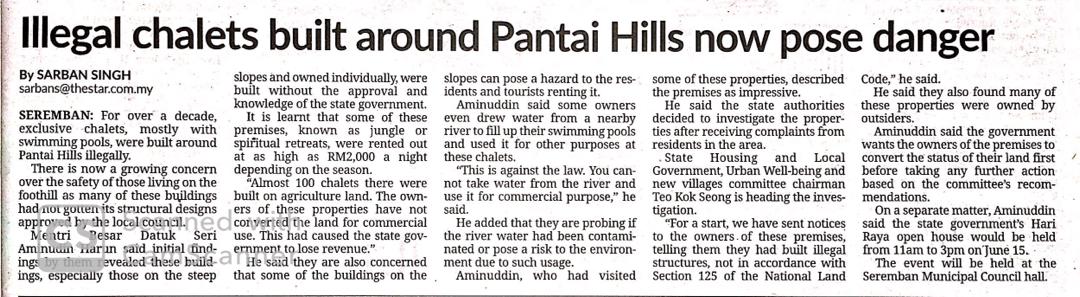 Tajuk :Illegal chalets built around Pantai Hills now pose danger