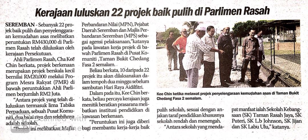 Tajuk :Kerajaan luluskan 22 projek baik pulih di Parlimen Rasah