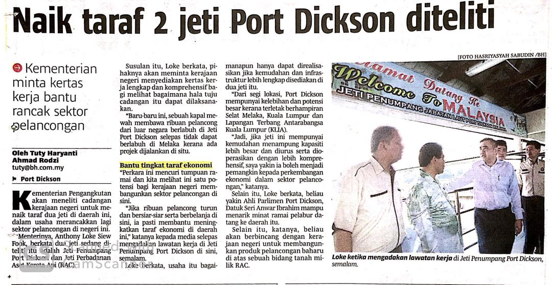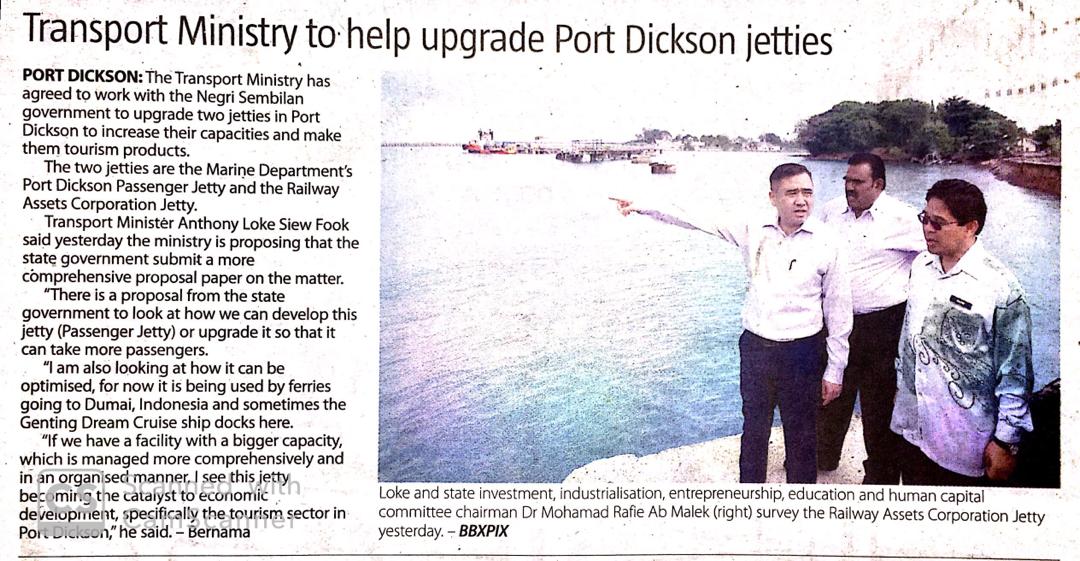 Tajuk :Transport Ministry to help upgrade Port Dickson jetties