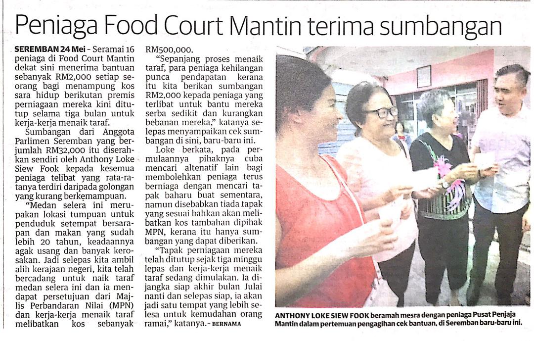 Tajuk :Peniaga Food Court Mantin terima sumbangan