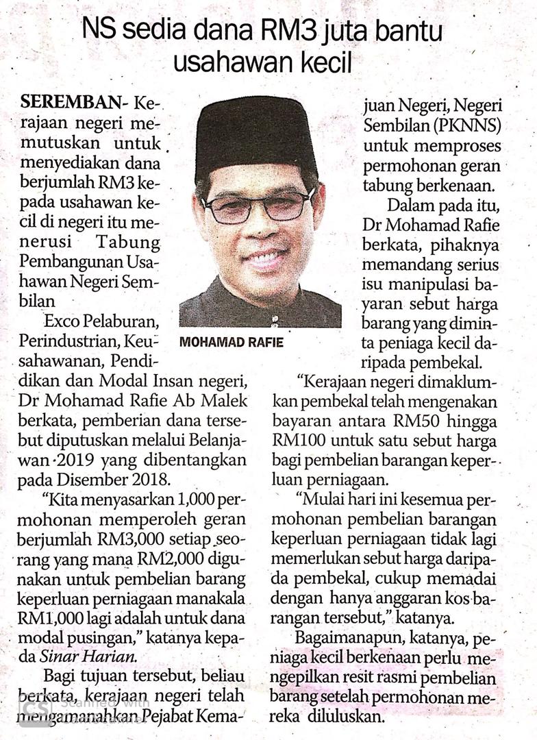 Tajuk :NS sediakan dana RM3 juta bantu usahawan kecil