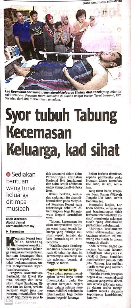 Tajuk :Syor tubuh Tabung Kecemasan Keluarga,kad sihat