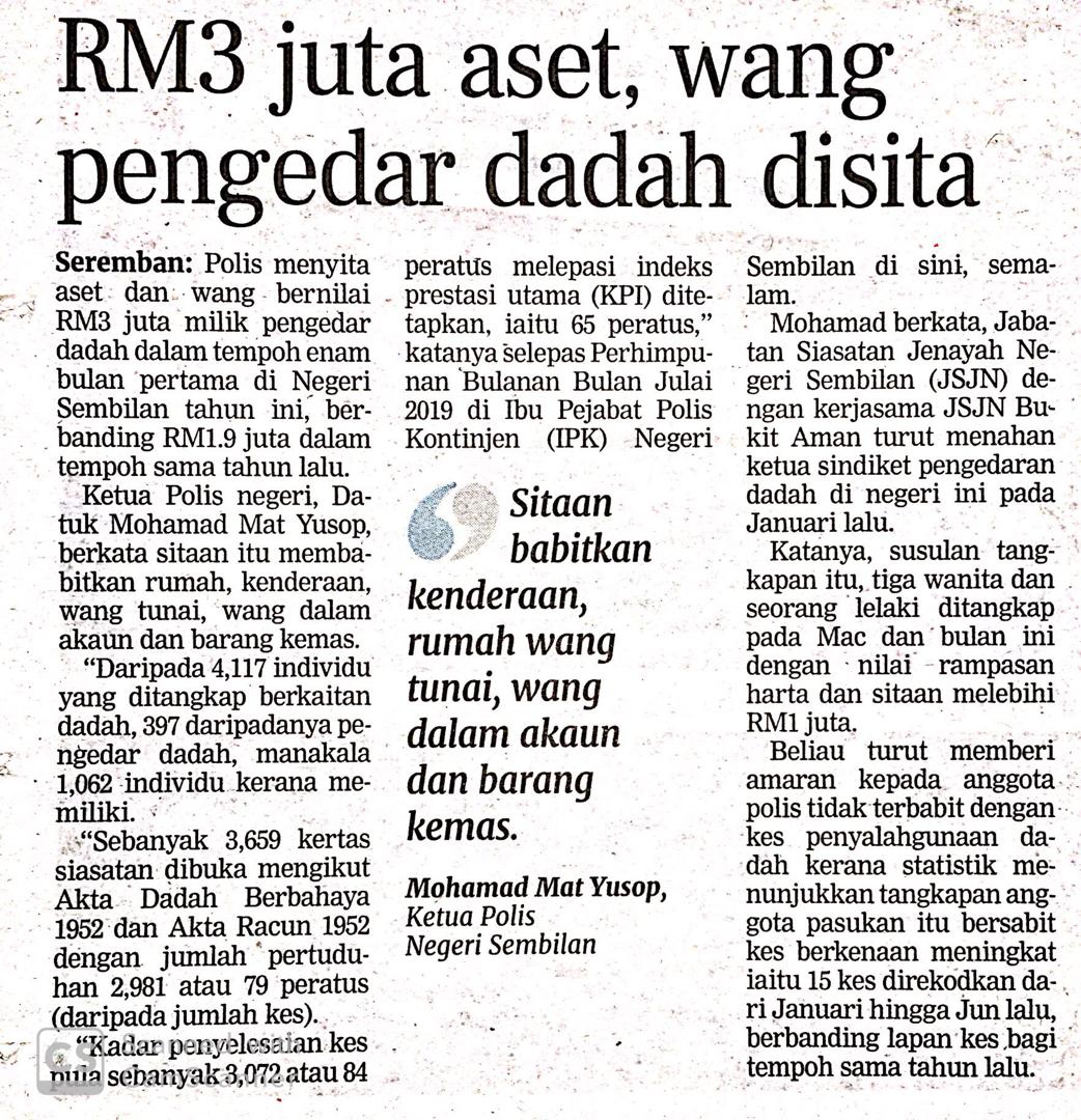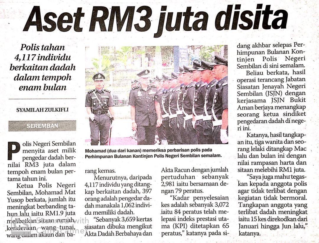 Tajuk :RM3 juta aset, wang pengedar dadah disita