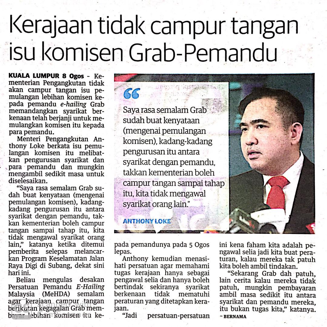 Tajuk :Kerajaan tidak campur tangan isu komisen Grab-Pemandu