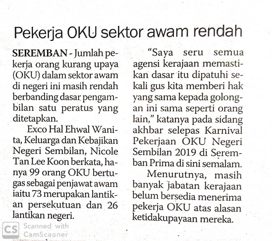 Tajuk :Peratus jumlah pekerja orang kurang upaya (OKU) dalam sektor awam di negeri ini masih rendah