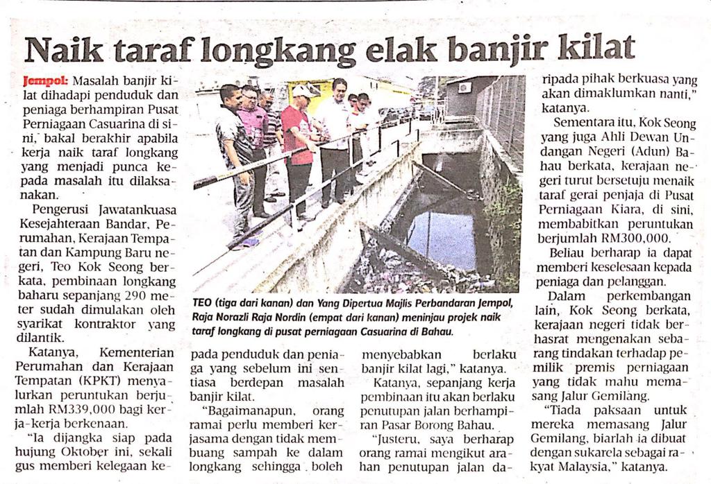 26 Ogos 2019 Tajuk :naik taraf longkang elak banjir kilat Tarikh Berita :26 Ogos 2019Akhbar :Harian Metro