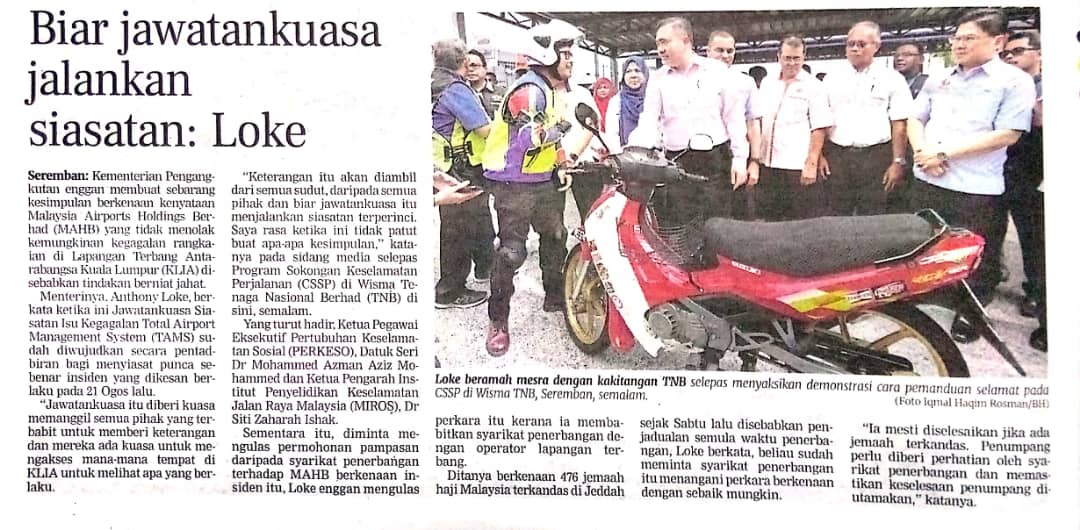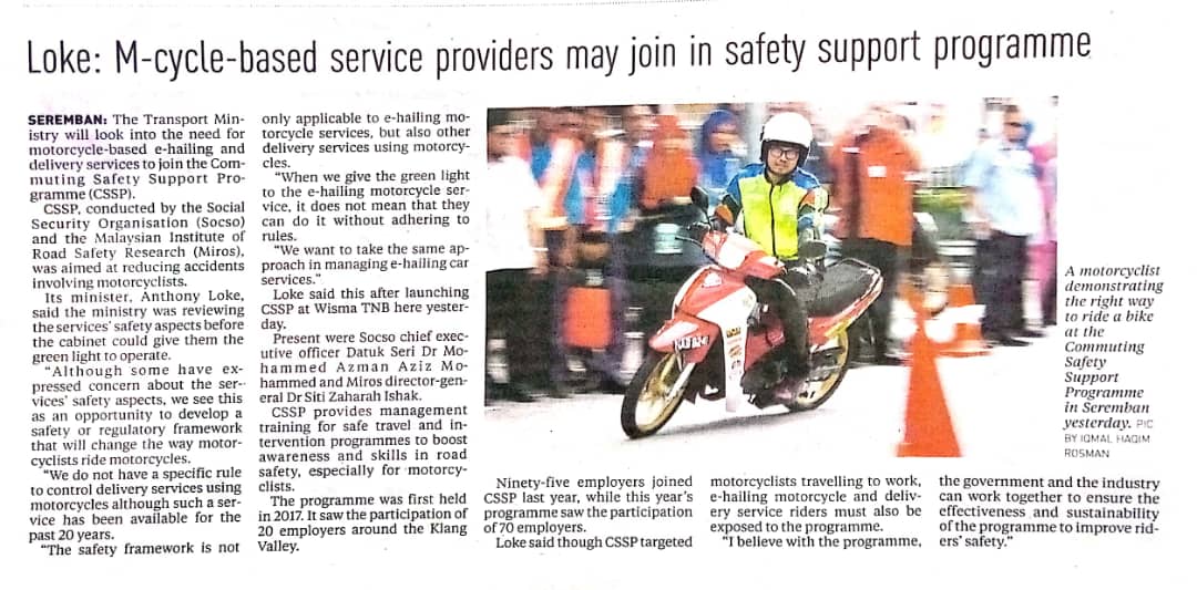 Tajuk :Loke: M-cycle-based service providers may join in safety support programme