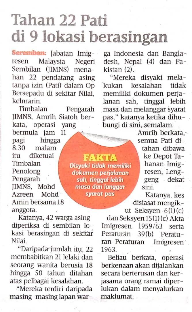 Tajuk :Tahan 22 Pati di 9 lokasi berasingan