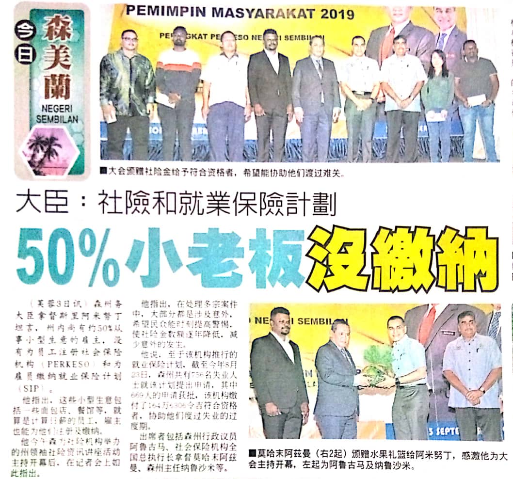 Tajuk :Seremban- MBNS dalam Majlis Perasmian Program PERKESO Bersama Pemimpin Masyarakat Tahun 2019 di Klana Resort, Seremban semalam. Beliau menyarankan agar lebih ramai mencarum dalam skim yang disediakan demi kebaikan sekiranya berlaku kemalangan keatas pencarum. Skuad PERKESO Prihatin ditubuhkan bagi menangani setiap aduan dan permohonan