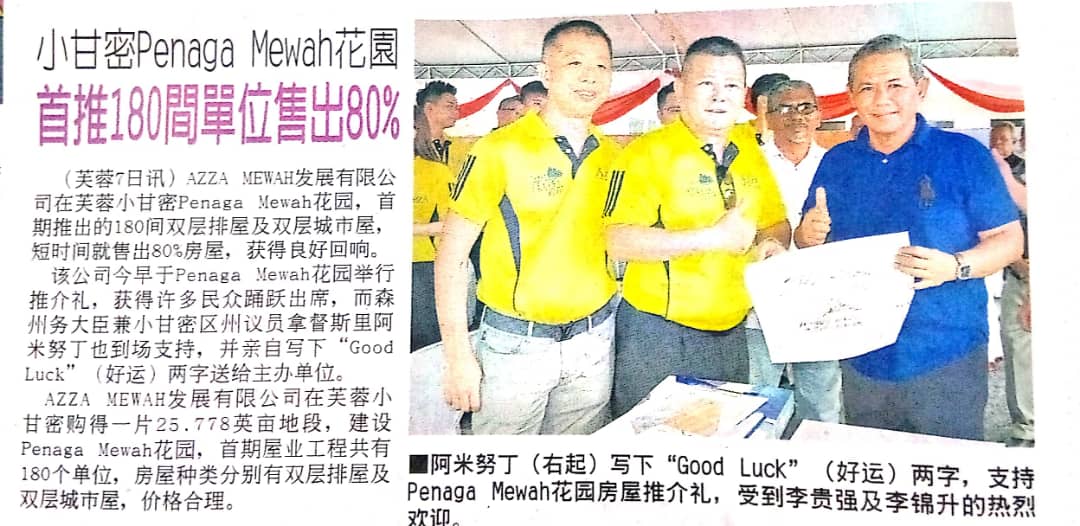 Tajuk :Seremban- MBNS dalam majlis pelancaran projek perumahan baharu bertempat di Taman Penaga Mewah, Seremban semalam. Harga yang ditawarkan amat menarik dan terletak di kawasan yang strategik.