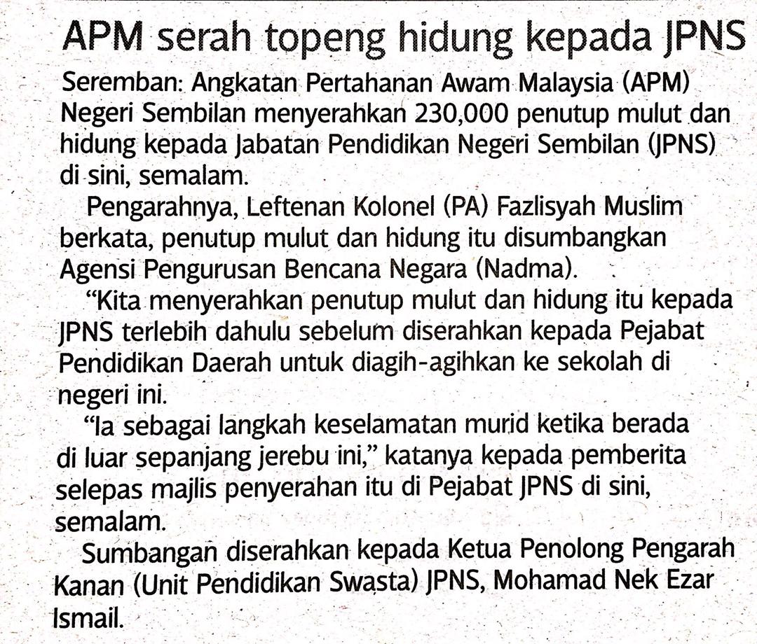 Tajuk :APM NS sumbang 230,000 topeng muka