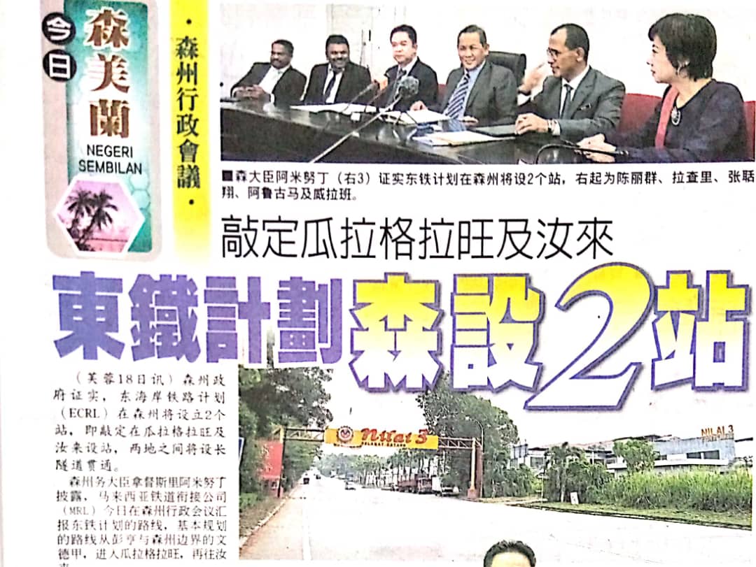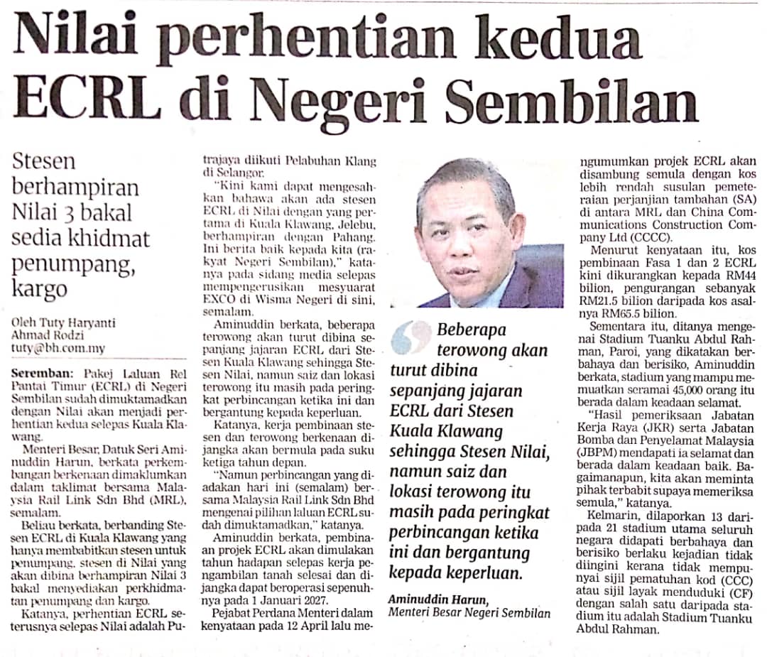 Tajuk :MBNS memaklumkan Pakej Laluan Rel Pantai Timur (ECRL) di Negeri Sembilan sudah dimuktamadkan Nilai sebagai perhentian kedua selepas Kuala Klawang, Jelebu semasa taklimat bersama Malaysia Rail Link Sdn Bhd (MRL) semalam