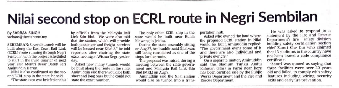 Tajuk :Nilai second stop on ECRL route in Negri Sembilan