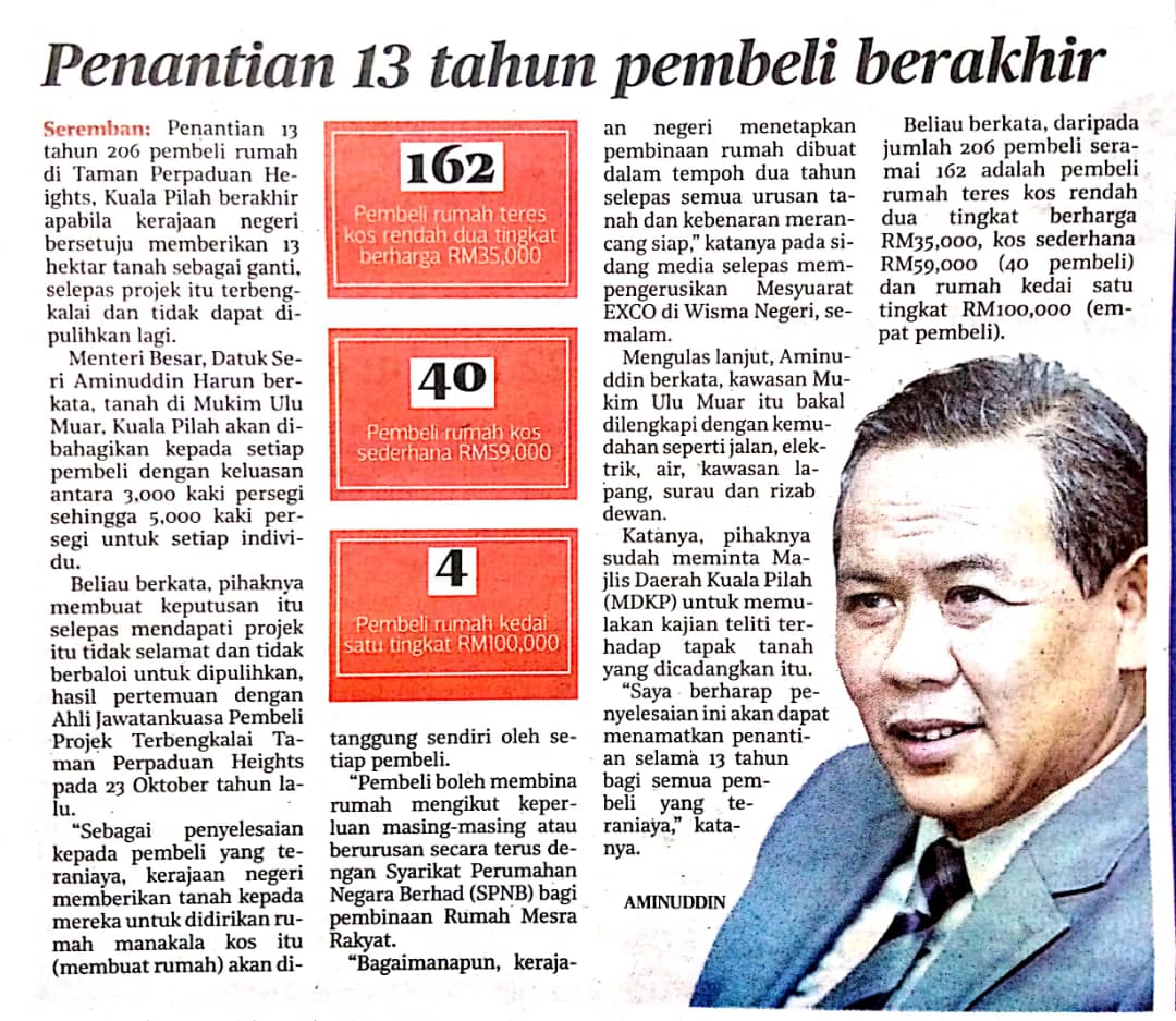 Tajuk :Penantian 13 tahun pembeli berakhir