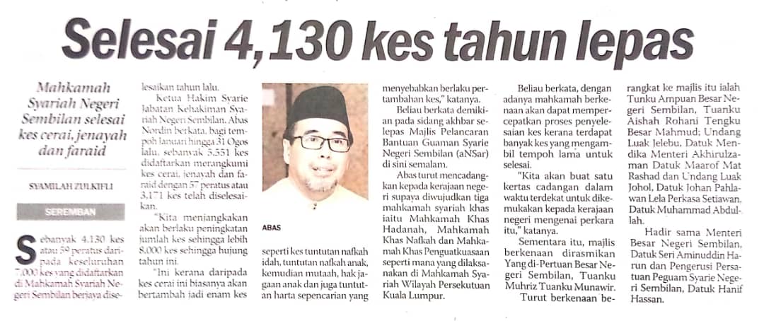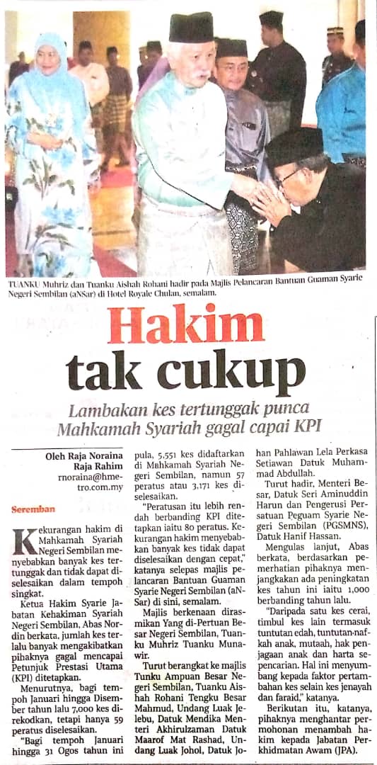 Tajuk :Hakim Mahkamah Syariah Negeri Sembilan tak cukup